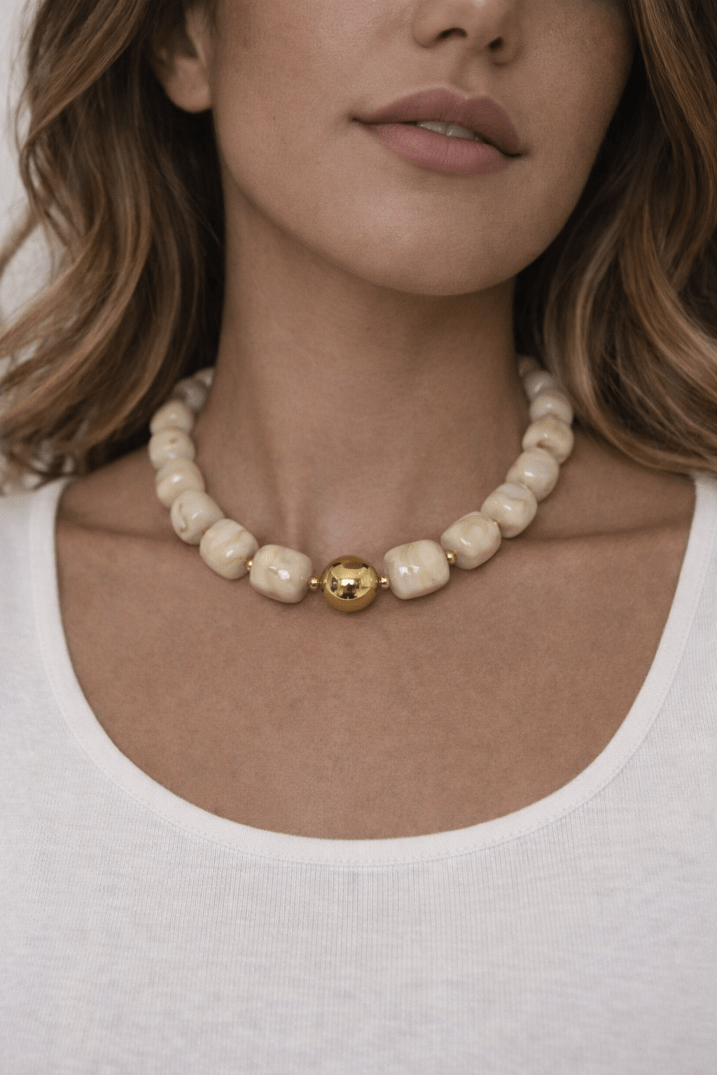 Perlen in Mamor-Optik & eine goldene Perle