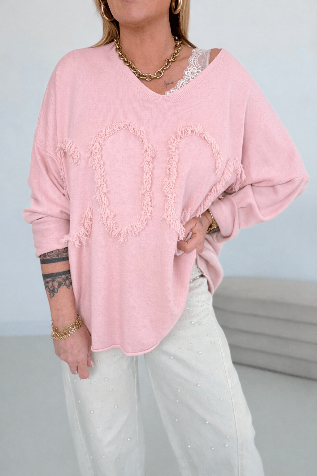 Vorne Schriftzug mit Fransen