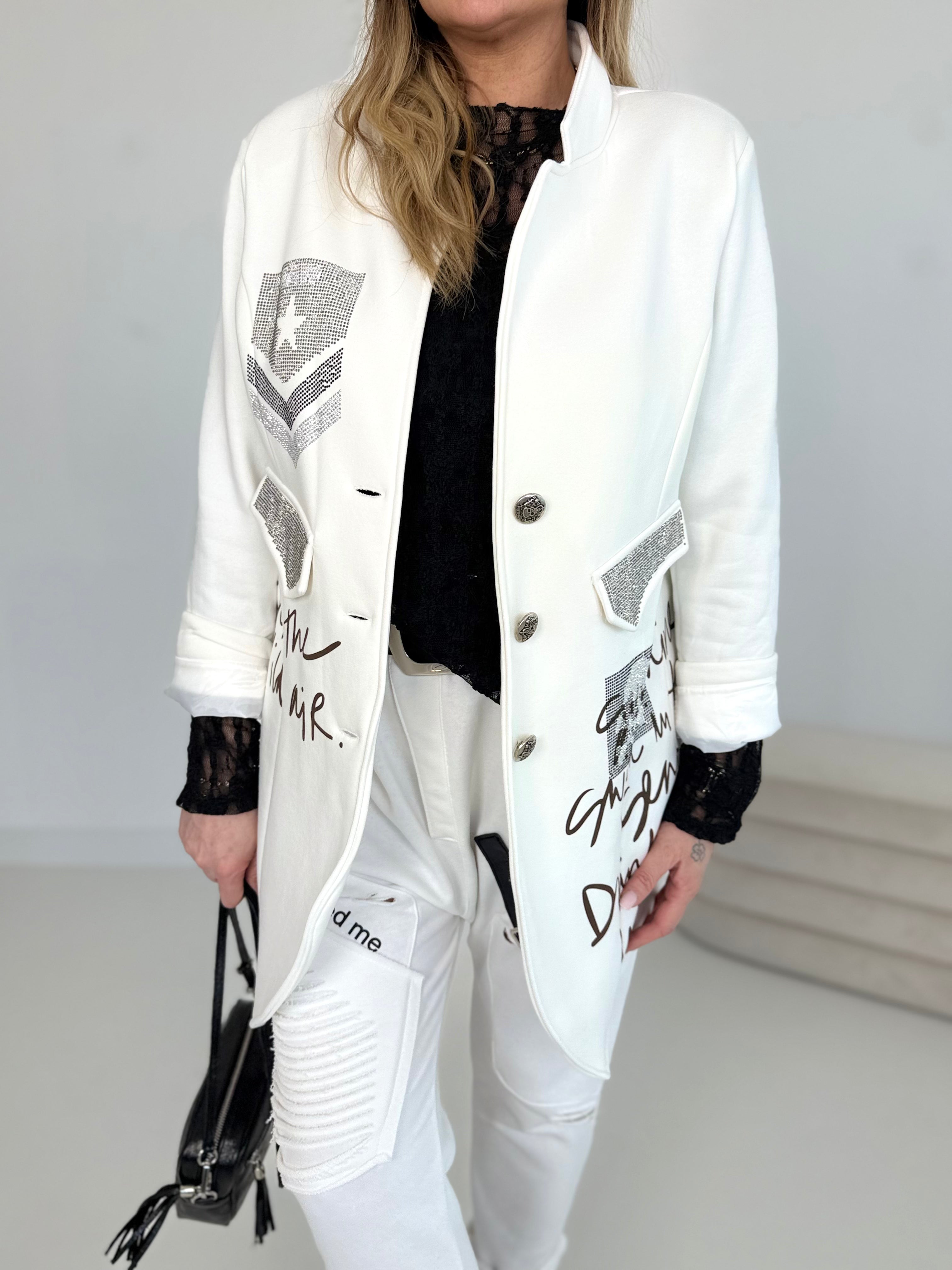 Zakflappen en prints versierd met glanzende strass-steentjes.